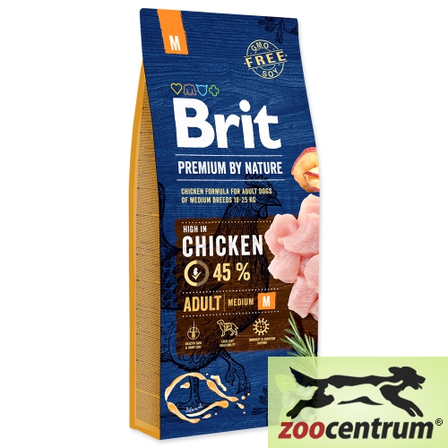 Kompletní prémiové krmivo s kuřecím masem pro dospělé psy středně velkých plemen.