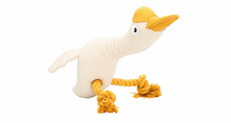Husa, 29 cm, látková robustní hračka s bavlněnými uzly, HIPHOP DOG, krémová/hořčicová