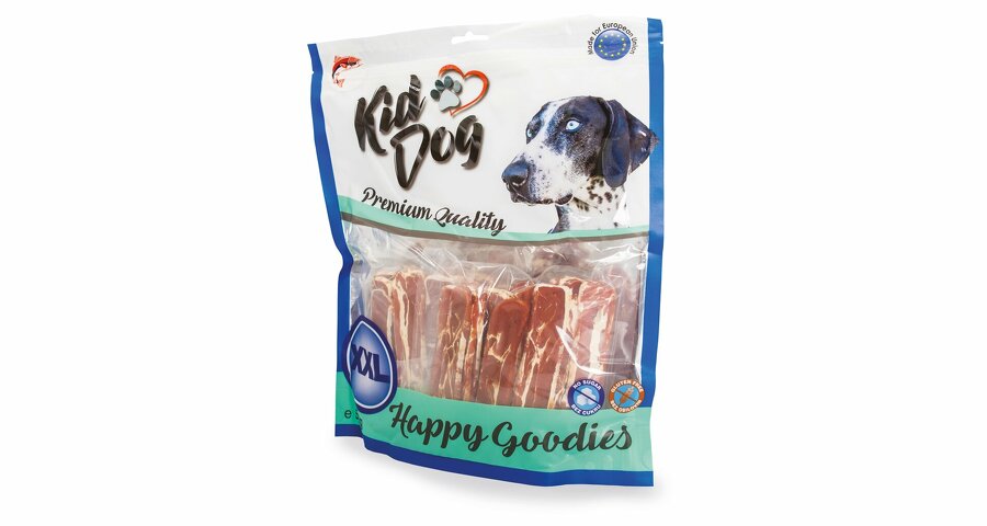 Kiddog Premium Snack s vysokým obsahem hovězího masa 86 % a živočišného proteinu min. 45 % ve tvaru pásku jsou ideálním doplňkem stravy. Složení je bezlepkové (neobsahují obiloviny) s nízkým obsahem tuku. Mají výrazně masitou chuť. Jsou jedinečnou volbou buď jako pamlsek anebo odměna při výcviku.