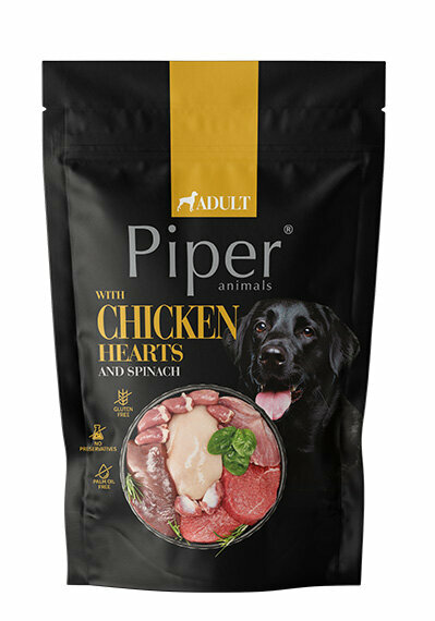 Složení: maso a živočišné produkty 65 % (hovězí 10 %, vepřové 10 %, kuřecí 5 %, kuřecí srdce 5 %, kuřecí žaludky 3 %, hovězí játra 3 %), masový vývar, zelenina (špenát 4 %), obiloviny (přírodní hnědá rýže 4 %), minerály, oleje a tuky (lněný olej 0,2 %), sušený rozmarýn (0,01 %)